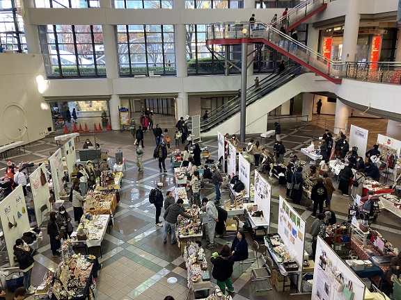 県内の社会福祉法人や、NPO法人が運営する就労継続支援A型、B型事業所などが参加し34ブースにお店が並びます。